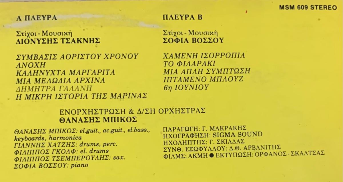 Στο 1986 μας γυρνάει το μουσικό podcast της Parallaxi «Τα χίλια τραγούδια της ζωής μου». Αφορμή, ο δίσκος «καλή ακρόαση» που μοιράζονται η Σοφία Βόσσου και ο Διονύσης Τσακνής για λογαριασμό της MINOS.
