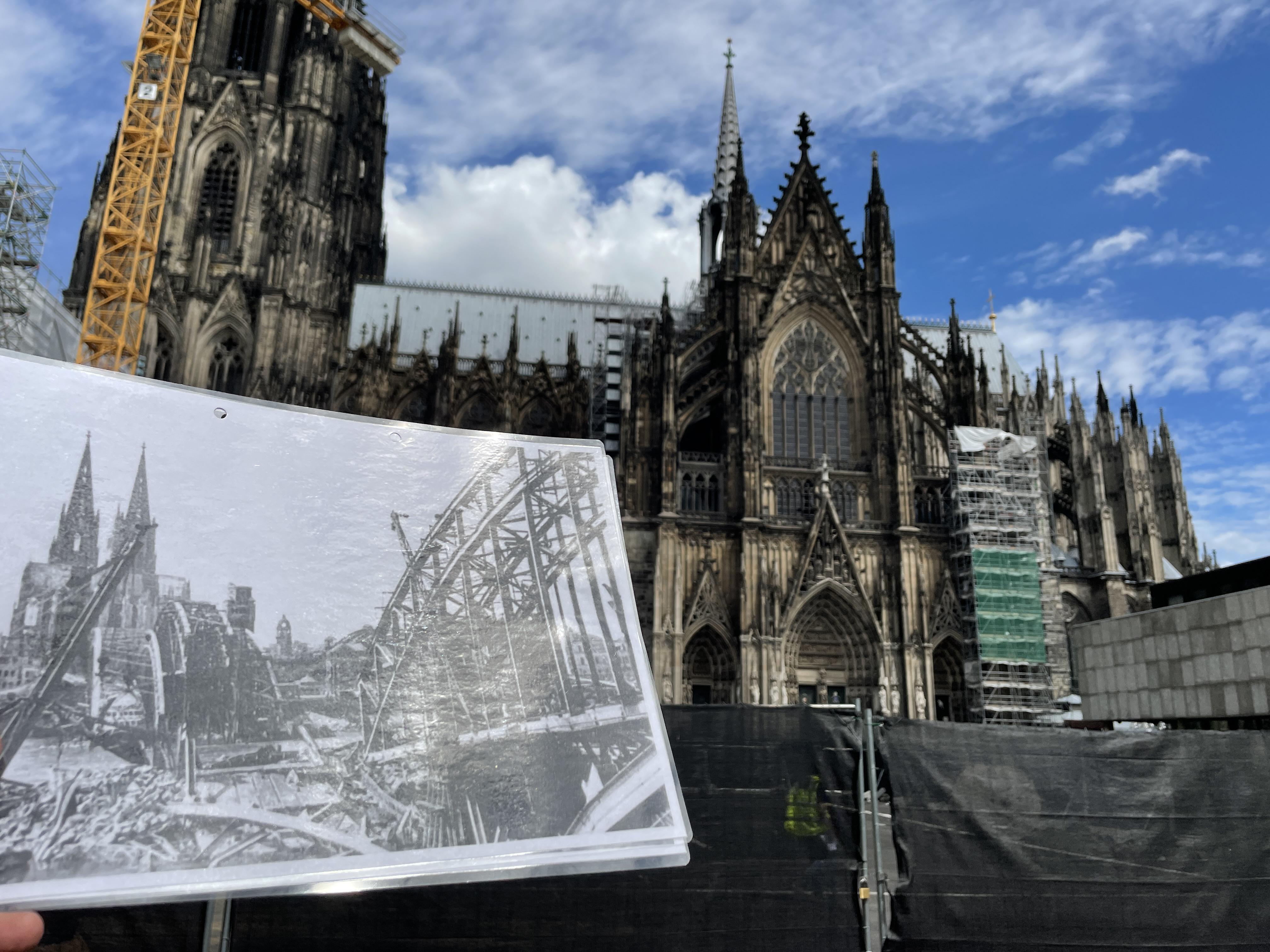 Ο ξεναγός στο σημείο εκείνο εξηγεί για το περιβόητο καρναβάλι της Κολωνίας πασίγνωστο μέχρι και της ημέρες μας στο οποίο τα πρώτα χρόνια μετά τον πόλεμο απαγορευόταν η αναφορά στον Β παγκόσμιο πόλεμο. Οι πρώτοι τολμηροί ηθοποιοί που σατίρισαν το γεγονός περιθωριοποιήθηκαν και προκάλεσαν μεγάλη αναστάτωση στην πόλη τους κατοίκους και τις δημοτικές αρχές μιας και για χρόνια αποτελούσε θέμα ταμπού (σε πολλές περιπτώσεις συνεχίζει να είναι ακόμα) όχι μόνο στην Κολωνία αλλά και σε όλη την Γερμανία.