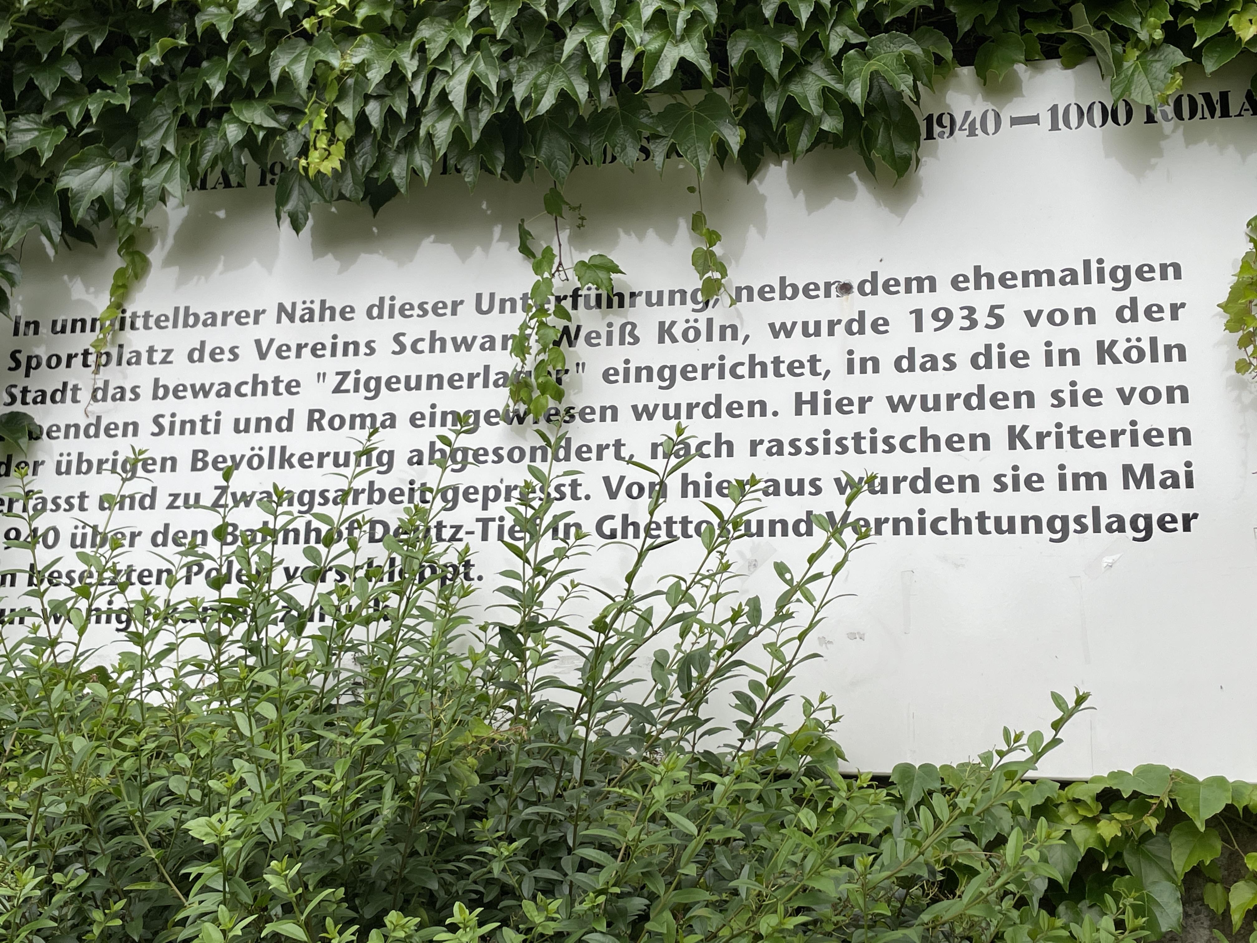 Μια αναμνηστική επιγραφή υπάρχει κοντά στην πλατεία Schwarz-Weiß-Platz που μαρτυρά όχι μόνο το Ρομά Ολοκαύτωμα αλλά και τα δεινά που υπέστησαν για πολλά χρόνια μετά τον πόλεμο, θύματα των προκαταλήψεων της εποχής.