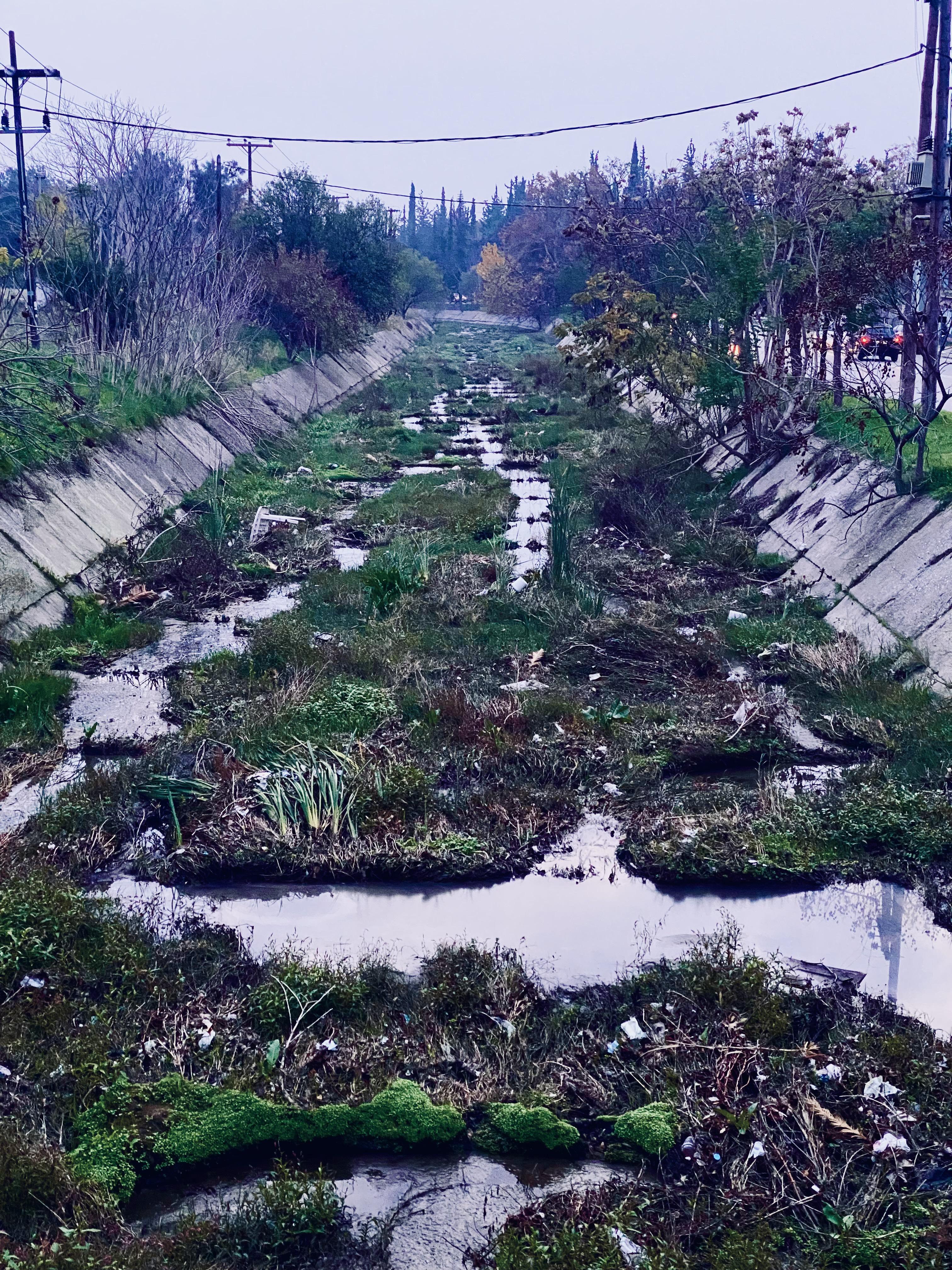 Τα παλιά χνάρια του χειμάρρου πλάι στο νοσοκομείο Άγιος Δημήτριος, μια μικρή χαράδρα γεμάτη βλάστηση που απλά φουντώνει και συντηρείται μόνο της.