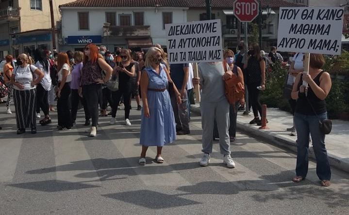 Το πρωί της Δευτέρας, γονείς πραγματοποίησαν πορεία στους δρόμους του Λαγκαδά, ξεκινώντας από το χώρο που στεγάζει τα δύο γυμνάσια και καταλήγοντας στην κεντρική πλατεία. Με συνθήματα, διαμαρτύρονταν για το αδιέξοδο που υπάρχει γύρω από την ομαλή φοίτηση των παιδιών τους. Η Περιφερειακή Διεύθυνση Εκπαίδευσης δεν ενέκρινε την πρόταση για τη λύση της τηλεκπαίδευσης για τις δύο σχολικές μονάδες.