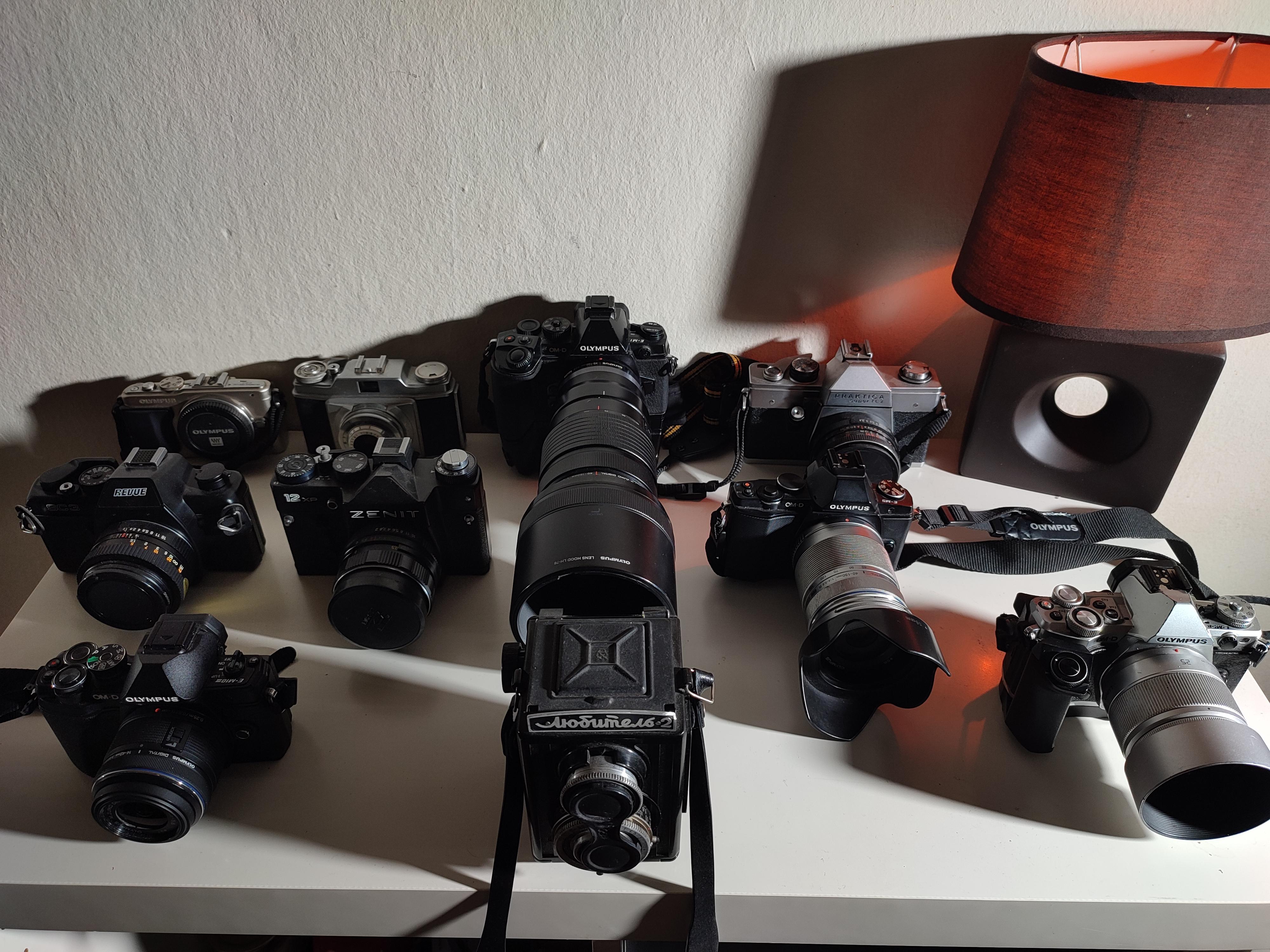 Ο Γιώργος Τριανταφύλλου έχει τέσσερις αναλογικές και πέντε ψηφιακές κάμερες. Μου δίνει να περιεργαστώ την αγαπημένη του, όσο την περιγράφει. Μοιάζει παλιά. «Αυτή είναι μία Lubitel 2, του 1955, Σοβιετικής Ένωσης. Κάθε φορά που την παίρνω στα χέρια μου, αναρωτιέμαι τι έχει φωτογραφήσει. Αντικείμενο με Ιστορία. Ίσως να έχει δει και πόλεμο…»