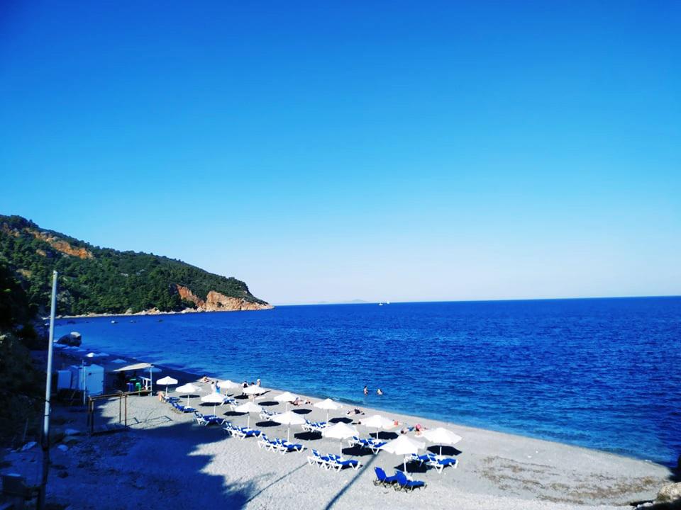 Ξεχωριστή θέση στην καρδιά μου και αρκετό χώρο στη μνήμη μου έχουν καταφέρει να κερδίσουν τα καθάρια νερά του νησιού. Η Μηλιά για τα κρυστάλλινα νερά της, το γκράντε ρεστοράν και την καντίνα για τους χύμα τύπους, ο Πάνορμος για την απλότητά του, τις βαρκούλες και τους καλοσυνάτους του ψαράδες, το Καστάνι για το άκρως καλοκαιρινό beach bar και το πράσινο που «γλύφει» σχεδόν τα γαλαζοπράσινα νερά της θάλασσας, ο Στάφυλος για την μεγαλοπρέπειά του και το Βελανιό για την ασύγκριτη ομορφιά του. Πόντος ξεκάθαρος στο Χόβολο για την άγρια ομορφιά του, που προσεγγίζεις μόνο πλατσουρίζοντας και που θα εκτιμούσε μόνο ένας σωστός πεζοπόρος.