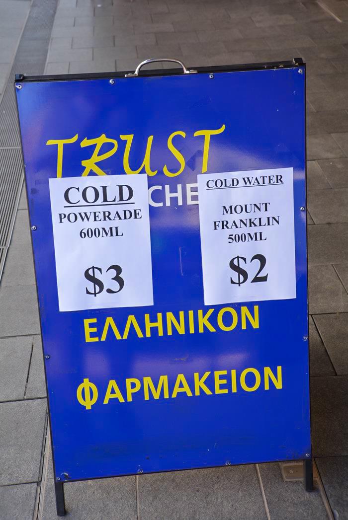 Επισκεφτήκαμε στη Μελβούρνη δύο περιοχές με έντονη την Ελληνική παρουσία. Η πρώτη ήταν η γειτονιά Oakleigh όπου στον περίπατό μας στον πεζόδρομο Eaton Mall η αίσθηση ήταν απόλυτα Ελληνική ! Επιγραφές, προϊόντα, καταστήματα, μουσική, άνθρωποι κ.α. να είναι όλα Ελληνικά. Και φυσικά φραπές και φρέντο εσπρέσο και μπουγάτσα Θεσσαλονίκης ακριβώς όπως στην Ελλάδα και όπως μόνο μόνο εμείς οι Έλληνες ξέρουμε.