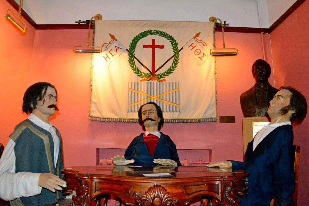 Σε μια ξεχωριστή αίθουσα του μουσείου αναπαριστάνεται, με καθισμένους γύρω από ένα τραπέζι τους τρεις εμπόρους – ιδρυτές της Φιλικής Εταιρείας, η σκηνή της ίδρυσης της πατριωτικής μυστικής οργάνωσής τους.