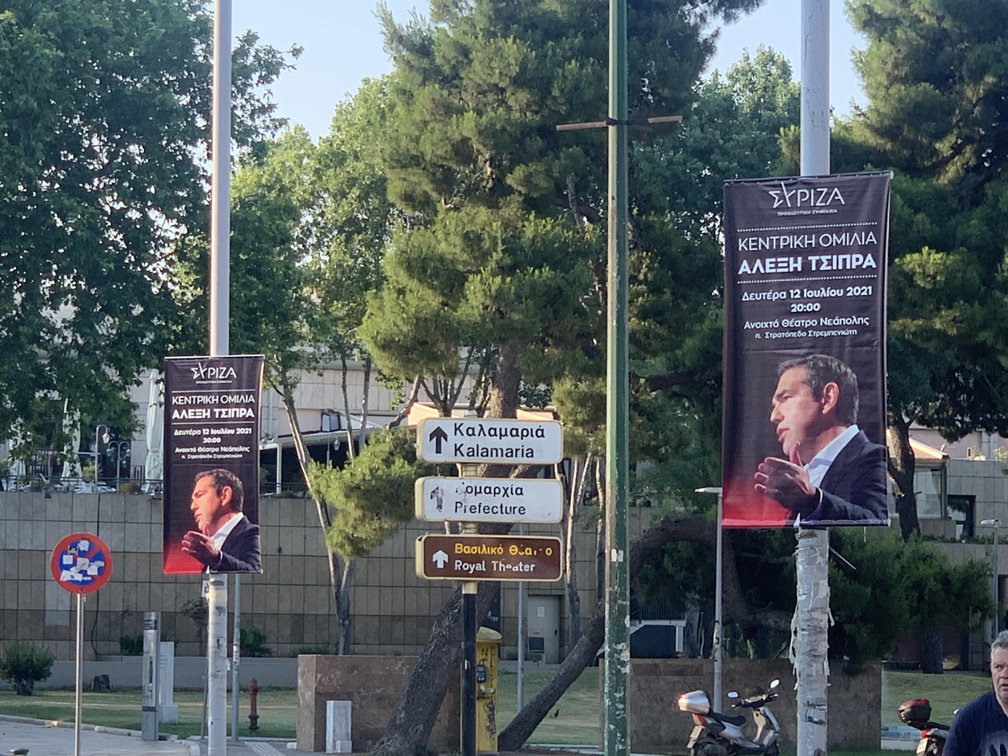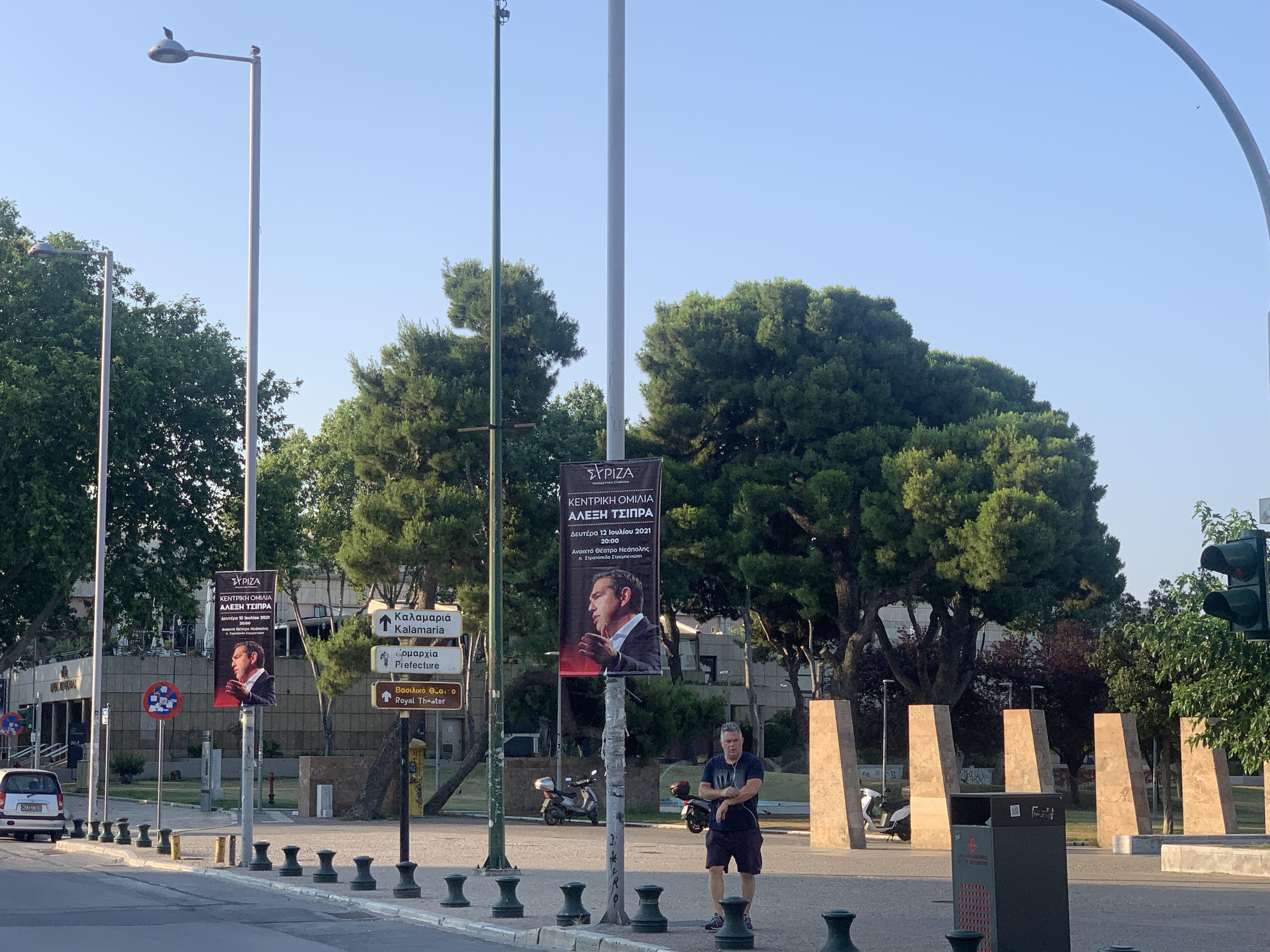Ο Αλέξης Τσίπρας έρχεται σήμερα στη Θεσσαλονίκη και η πόλη γέμισε χαρτονένιες αφίσες και μπάνερ.