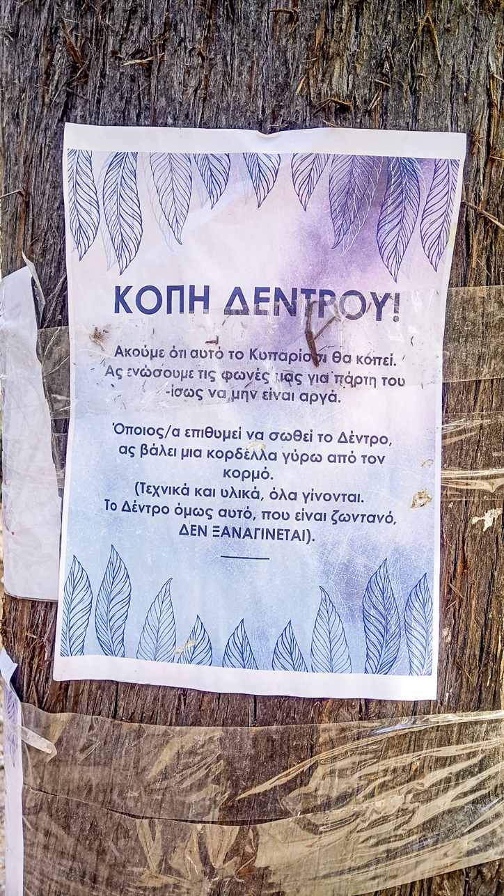 Η αναστάτωση από την κοπή ενός μεγάλου κυπαρισσιού στην περιοχή της Βαφοπούλου και τα ζητήματα που προκύπτουν για την παιδεία μας.