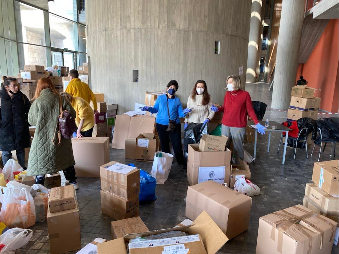 Η πρωτοβουλία του Δήμου Θεσσαλονίκης που ανακοινώθηκε στο Δημοτικό Συμβούλιο της προηγούμενης Δευτέρας, πήρε σάρκα και οστά μόλις την επόμενη μέρα όπου από το πρωί της Τρίτης, 1 Μαρτίου, ο εντεταλμένος Πολιτικής προστασίας Βασίλης Μωυσίδης συντόνισε τις ομάδες και την διαδικασία συλλογής ειδών ανάγκης στο Φουαγιέ του Δημαρχείου με ομάδες εθελοντών, κυρίων Ουκρανών που ζουν στην Θεσσαλονίκη, αλλά και εθελοντών και υπαλλήλων του Δήμου που διέθεσαν τον εαυτό τους στην αποστολή ανθρωπιστικής βοήθειας.