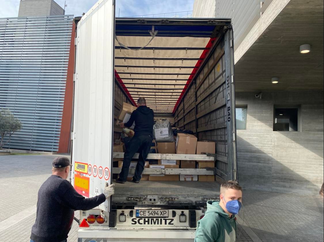 Έχουν ήδη φύγει από την πόλη δύο μεγάλα φορτηγά και 3 λεωφορεία με πακέτα περισσοτέρων από 40 τόνους ανθρωπιστικής βοήθειας που έχουν φτάσει στις πόλεις Λβιβ, Κίεβο, Οδησσό, Τσερνιβτσί, Τσορνομορο και Κοζέν.