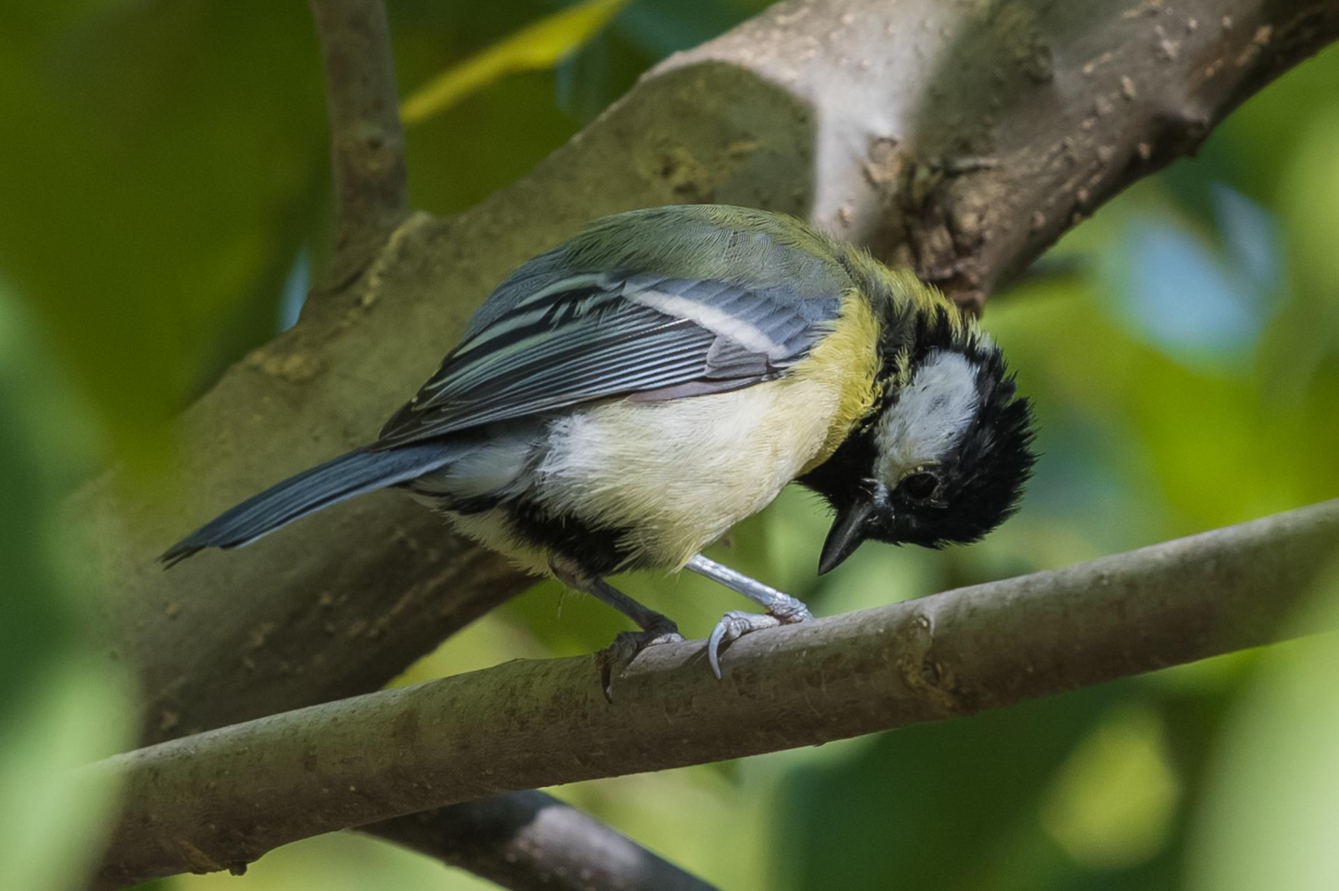 Η μεγαλύτερη παπαδίτσα, αναγνωρίζεται εύκολα από το κίτρινο κάτω μέρος με μαύρη κεντρική ζώνη, το γυαλιστερό μαύρο κεφάλι με μεγάλα λευκά μπαλώματα στο μάγουλο, την πράσινη πλάτη και τη στενή λευκή ρίγα στη γκριζογάλανη φτερούγα. Φύλα παρόμοια, αλλά το αρσενικό συνήθως πιο έντονο κίτρινο από κάτω, με πιο φαρδιά μαύρη ζώνη (σχηματίζει ολόμαυρο μπάλωμα στο κέντρο της κοιλιάς), ενώ το θηλυκό είναι συχνά, πιο απαλό κίτρινο, με πιο στενή και συχνά σπασμένη μαύρη ζώνη – το νεαρό σαν το ενήλικο -, αλλά έχει κίτρινο μπάλωμα στο μάγουλο χωρίς ολοκληρωμένο μαύρο όριο στο κάτω μέρος.