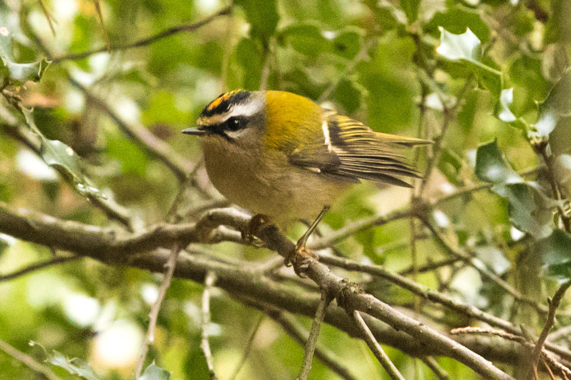 Επίσης, πλαϊνά λαιμού ζωηρά πρασινοκίτρινα, με χροιά ώχρας. Κορόνα όπως του Χρυσ. αλλά οι μαύρες μπορντούρες ενώνονται στο μέτωπο. Ενήλικο αρσενικό/ Πορτοκαλί στην κορόνα που διακρίνεται και όταν το πουλί είναι χαλαρό.