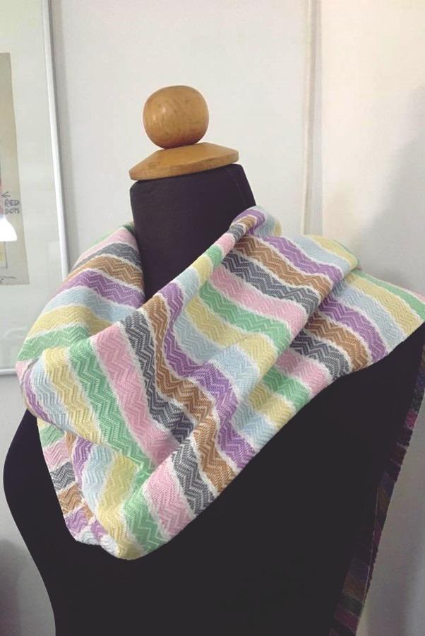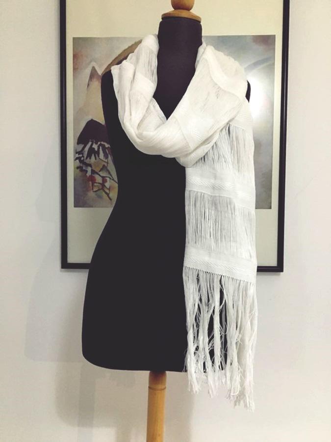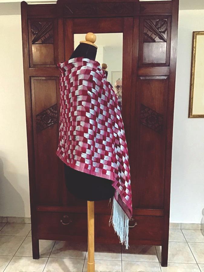 Δεν είναι ένα, είναι πολλά. Εξαρτάται κιόλας από την περίοδο. Τώρα πρόσφατα έφτιαχνα εσάρπες, πασμίνες. Τώρα με «γαργαλάει» μια άλλη κατάσταση όπου θέλω να ολοκληρώσω ένα ρούχο. Δεν γνωρίζω από υψηλή ραπτική παρόλα αυτά υπάρχουν απλές φόρμες ρούχων που βοηθούν. Σκέπτομαι να φτιάξω και κάτι μπλούζες, κάτι πανωφόρια.