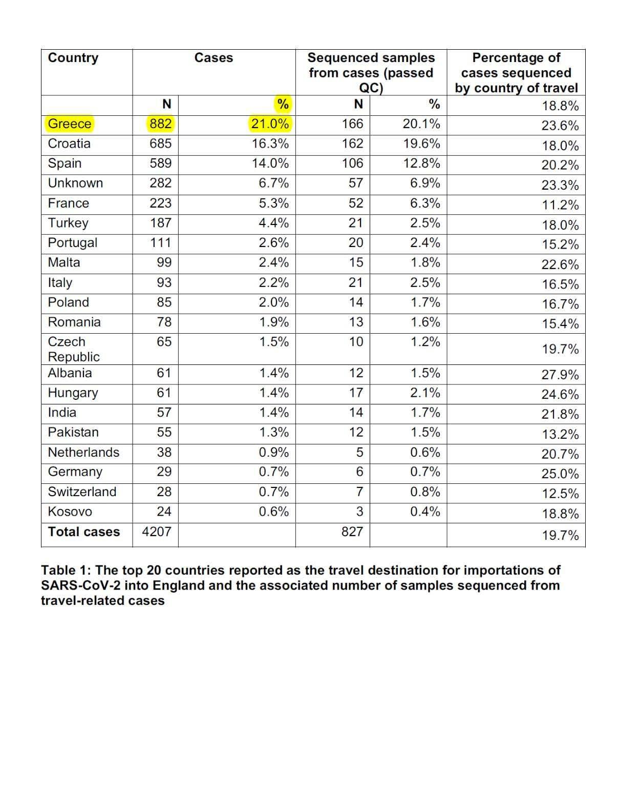 Πρόσφατη βρετανική μελέτη με πρώτο συγγραφέα τον Aggarwal από το πανεπιστήμιο του Cambridge, που είναι preprint εξετάζει 4.207 ταξιδιωτικές περιπτώσεις που επέστρεψαν στην Αγγλία μεταξύ 27/05/2020 and 13/09/2020 και βρέθηκαν να είναι θετικά κρούσματα στον κορωνοϊό.