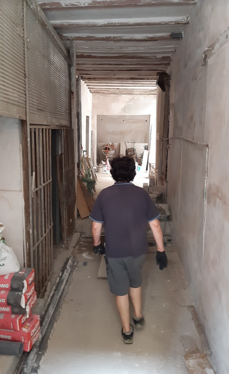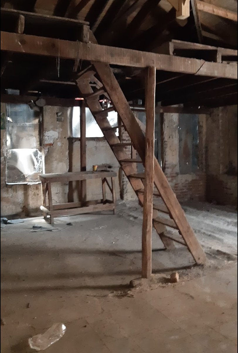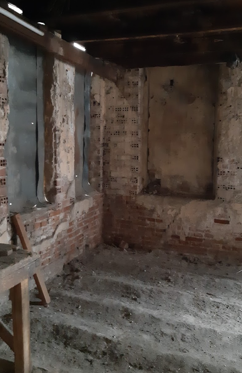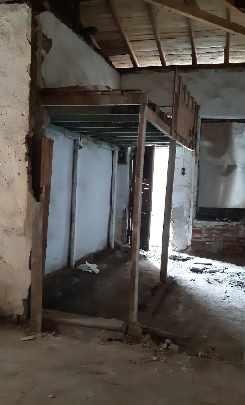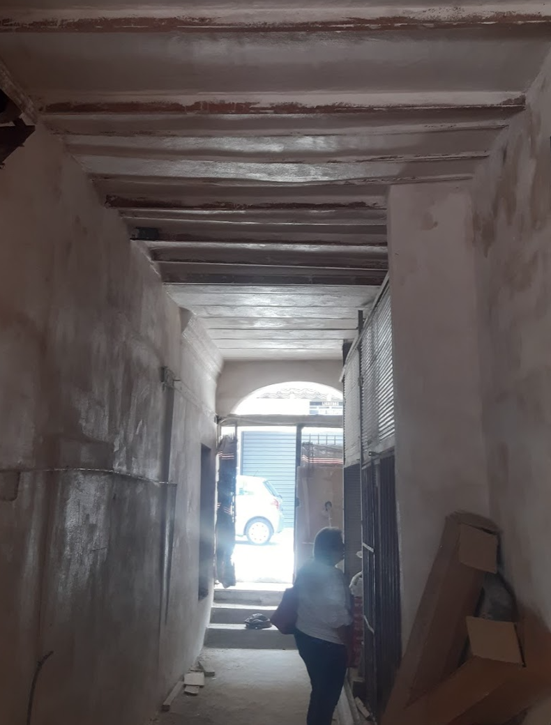 Η κατασκευή της οροφής του ισογείου (δάπεδο του ορόφου) με σιδερένια μπουντρέλια και συμπαγή τούβλα (πιθανόν πριν τη χρήση του οπλισμένου σκυροδέματος).