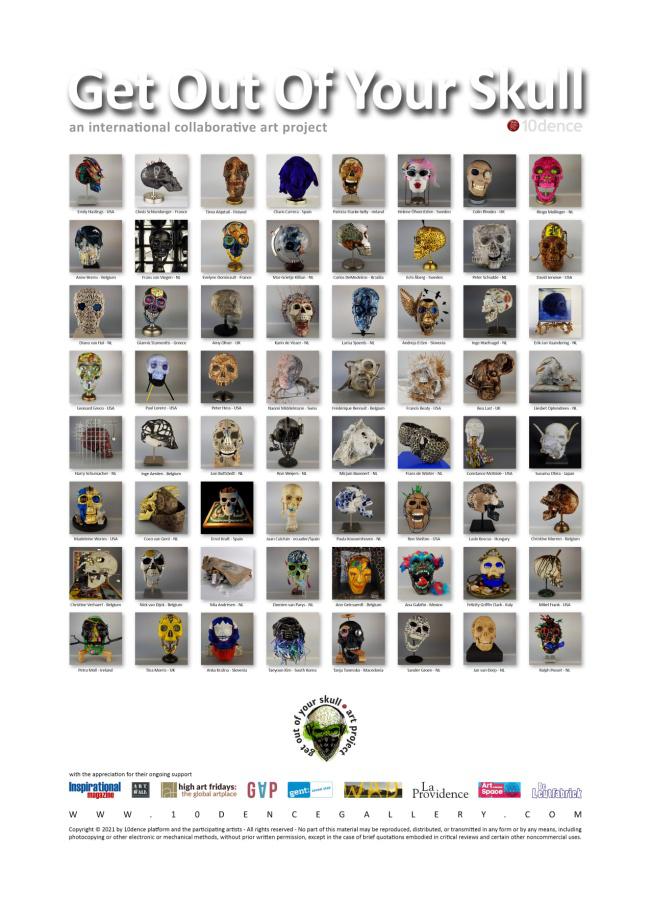 Καλλιτέχνες από όλο τον κόσμο κλήθηκαν μέσα στην πανδημία της Covid-19 να αποτυπώσουν τα συναισθήματα τους πάνω σε ένα ομοίωμα ανθρώπινου κρανίου, εξού και ο τίτλος “Get out of your skull”. Το project έδωσε την ευκαιρία μέσα σε μία πρωτόγνωρη κατάσταση στασιμότητας σε καλλιτέχνες να δημιουργήσουν, να εμπνευστούν και να ονειρευτούν τις πιο θετικές ημέρες.