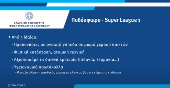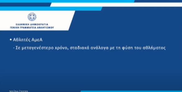 «Σε κάθε περίπτωση πάντως η επανεκκίνηση των αθλητικών δραστηριοτήτων (ακόμα και προπονήσεων) θα είναι κεκλεισμένων των θυρών».