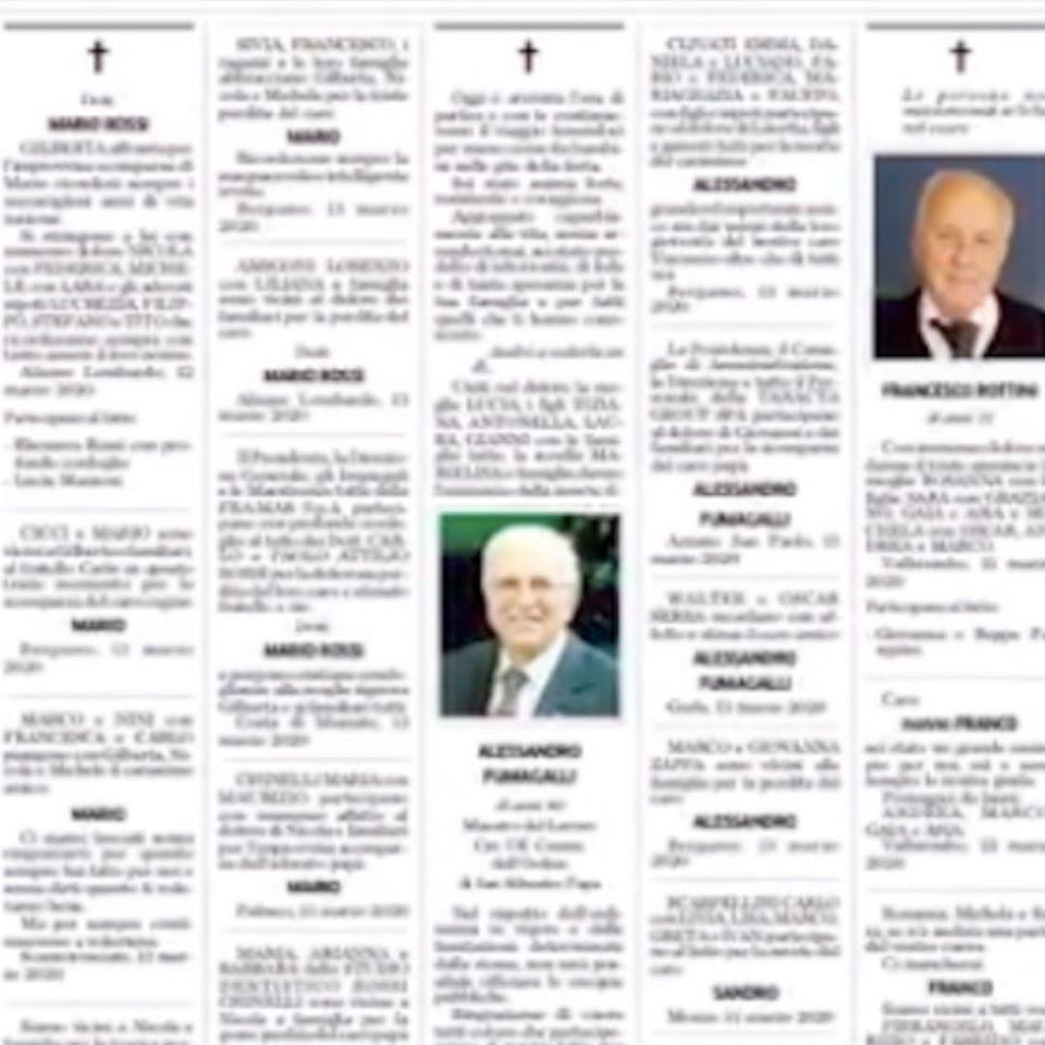 «Ήταν ο πατέρας μου. Αυτός στην πιο θολή από τις φωτογραφίες στις νεκρολογίες εχθές. Ήταν ο πατέρας μου. Τον θυμάμαι με μαύρο μούσι να μου μαθαίνει μπάλα στο πάρκο κάτω από το σπίτι μας. Ήταν η μητέρα μου. Αυτή η κομψή κυρία πέθανε μόνη της στο νοσοκομείο επειδή δεν μπορούσα να την επισκεφτώ. Ο μεγαλύτερος πόνος. Εκείνη. Μόνη. Ήταν η μητέρα μου, που μου έκανε χώρο στο μεγάλο κρεβάτι όταν είχα πυρετό και μου φαινόταν πάντα πως αυτό ήταν η μόνη μου γιατρειά. Ήταν ο θείος μου. Αυτός ο κύριος με τα γυαλιά που έφυγε μεταξύ πολλών άλλων εχθές. Ήταν ο θείος μου. Αυτός ο ίδιος ο θείος που με έπαιρνε να παίξουμε με τα αεροπλανάκια και με έκανε και πέταγα, κι ας πατούσαν τα πόδια μου κάτω. Ήταν η θεία μου. Η κυρία χωρίς φωτογραφία. Μόνο ημερομηνία γέννησης και θανάτου. Ήταν η θεία μου, γιατί δεν μπορούμε καν να πάμε στο σπίτι της για να βρούμε μια φωτογραφία της. Αυτή που κάποια Χριστούγεννα μου έκανε δώρο την πρώτη μου φωτογραφική μηχανή. Ήταν ο πατέρας μου. Ήταν η μητέρα μου. Ήταν οι θείοι μου, οι γείτονές μου, οι γονείς μου, οι συγγενείς των φίλων μου. Εκείνοι που τώρα δεν μπορούμε να κλάψουμε. Εκείνοι που, τώρα, δεν μπορούμε να αγκαλιάσουμε ο ένας τον άλλο να περάσει ο πόνος. Εκείνοι που δεν ξέρεις ποιοι είναι. Αλλά εγώ ξέρω. Για μερικούς, “μόνο οι γέροι πεθαίνουν”, “ναι, αλλά ήταν ήδη άρρωστοι”, “πολλοί περισσότεροι πεθαίνουν από άλλες αιτίες”. Και αν είστε μεταξύ αυτών που τα πιστεύουν όλα αυτά, πραγματικά δεν μάθατε τίποτα από αυτά που συμβαίνουν στην Ιταλία».