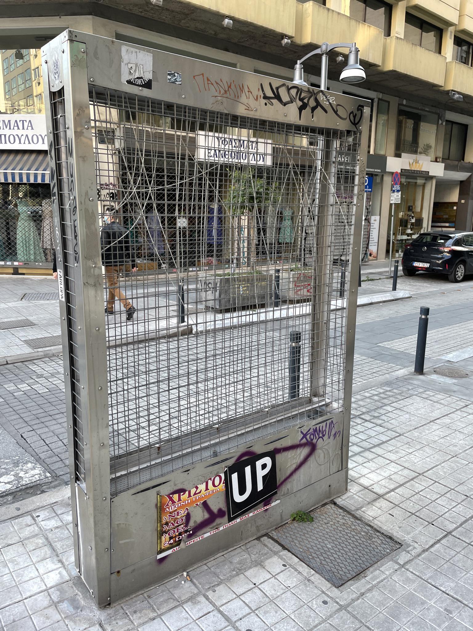 Περνώντας από τα πεζοδρόμια με δυσκολία καταλαβαίνει κανείς πως οι βρώμικες σκουριασμένες ξεχαρβαλωμένες κυψέλες παραταγμένες στην σειρά ήταν κάποτε νεροκουρτίνες.
