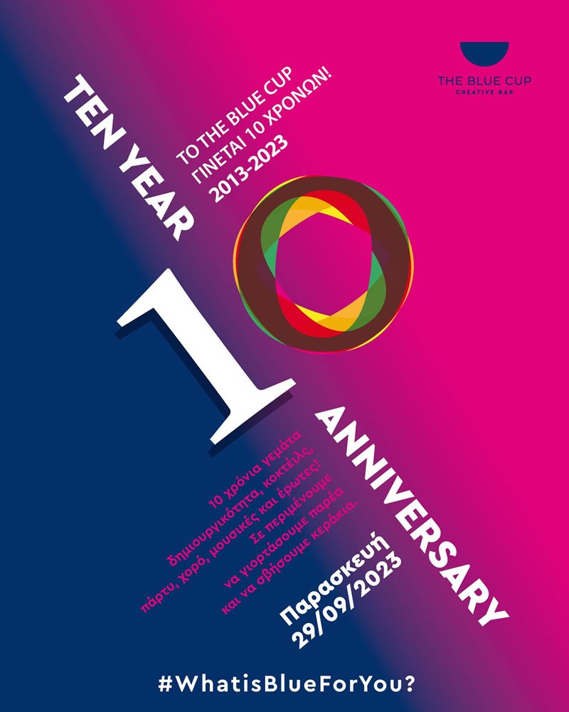 To πιο ψαγμένο στέκι των λαδάδικων, το αγαπημένο Blue Cup γιορτάζει 10 χρόνια γεμάτα γεύσεις, κοκτέιλς, χαμόγελα και αμέτρητα πρώτα ραντεβού και έχει ετοιμάσει για σένα ένα μοναδικό 3ήμερο, ξεκινώντας από αύριο!