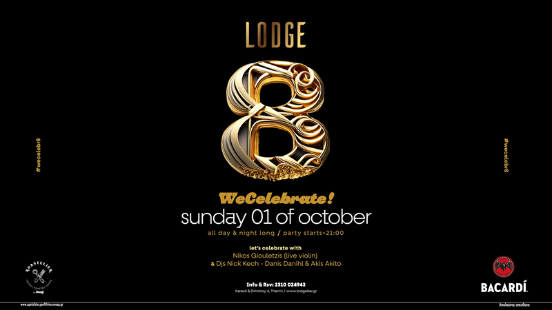 Το απόλυτο meeting point της Θέρμης, το Lodge, γίνεται 8 και σε καλεί να γιορτάσετε παρέα ένα επικό ολοήμερο πάρτι γενεθλίων την ερχόμενη Κυριακή 1 Οκτωβρίου. Από το πρωί μέχρι το βράδυ ψητές γεύσεις, ξεχωριστά cocktails και εκπληκτικές μουσικές επιλογές θα περιμένουν να φωτίσουν αυτή τη μέρα!