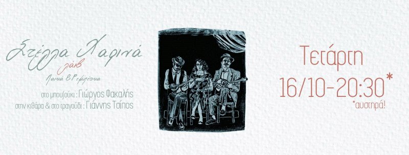*Σάββατο 19 Οκτωβρίου, στις 20.30, στο Aelios Petra, Β Πάροδος Ανεμόμυλων, Χορτιάτης, Τ. κρατήσεων 6972855595, 6979986660.