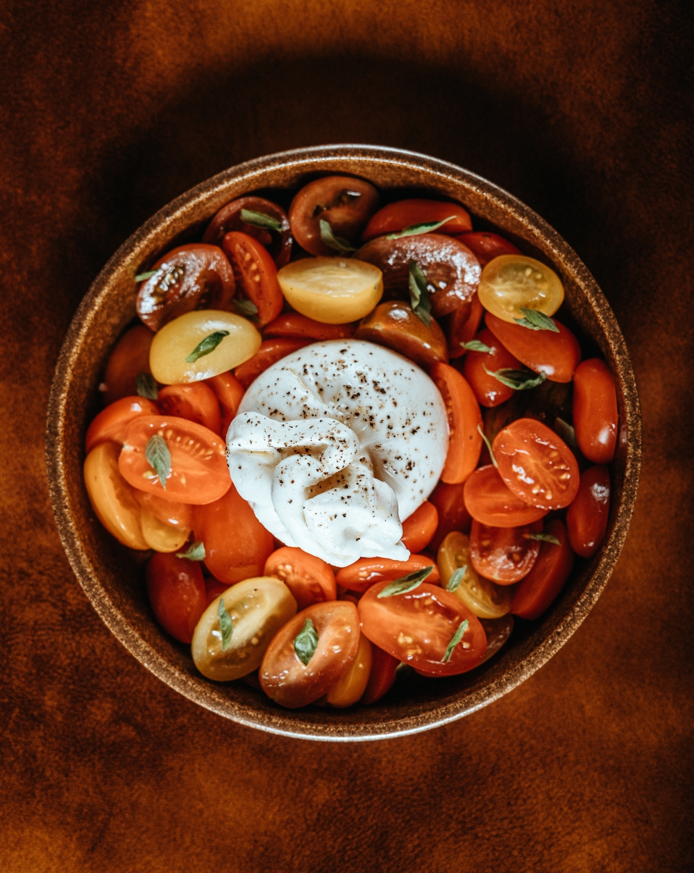 Σαλάτα burrata με βουβαλίσια μοτσαρέλα και πολύχρωμα τοματίνια. Μία καλοκαιρινή ιταλική επιλογή, που θα σας δροσίσει και θα σας ταξιδέψει στην γείτονα χώρα.