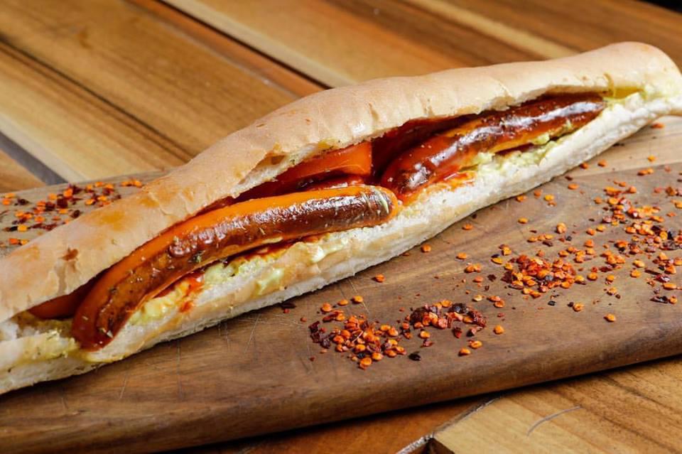 Σουβλάκι, παντσέτα, σος σε ψωμάκι από την Καντίνα Ντερλικατέσεν