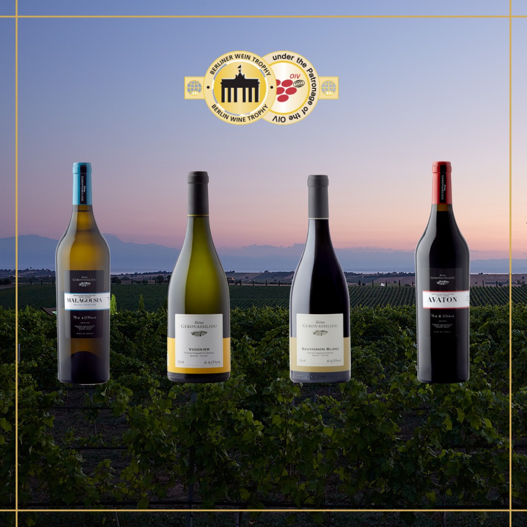 Τέσσερα Χρυσά Μετάλλια για τα κρασιά του Κτήματος Γεροβασιλείου από το Berliner Wein Trophy 2022. 400 Διεθνείς κριτές, 14000 ετικέτες από 40 χώρες σε ένα παγκόσμιο διαγωνισμό υψηλών αξιώσεων.