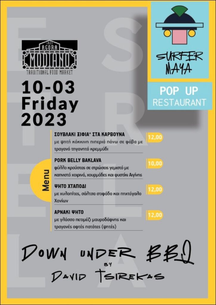 *Το Surfer Maya -το side project του ομίλου Estrella- μεταφέρεται στην Αγορά Μοδιάνο, λειτουργώντας από τις 20:00 και μετά ως pop-up βραδινό εστιατόριο στον χώρο του Estrella. Το νέο μενού του, που επιμελείται ο εξαιρετικός βραβευμένος σεφ Στέφανος Σταμίδης θα έχει ελληνική αφετηρία και κατεύθυνση with a twist -ή αλλιώς, Greek-inspired fast casual.