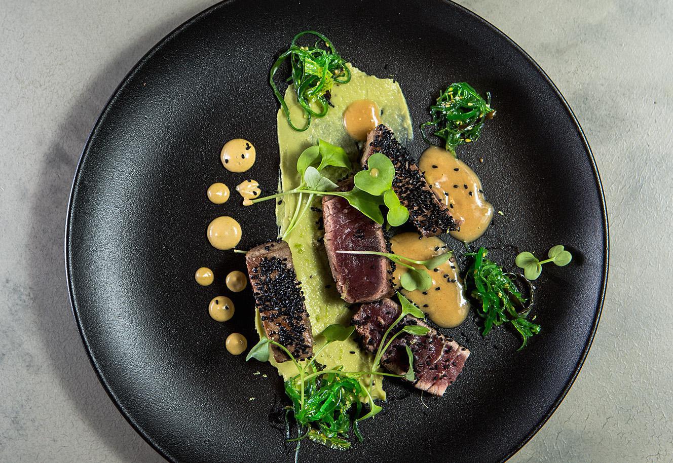 Το φιλέτο του σπάνιου, κιτρινόπτερου τόνου, που αλιεύεται στα ανοιχτά της νότιας Σιθωνίας και φεύγει αυθημερόν για την Ιαπωνία, παντρεύεται εδώ με κρέμα αβοκάντο, σάλτσα κάπαρης και ωραία wakame. Το Τόκυο θα ζηλεύει να είστε σίγουροι!