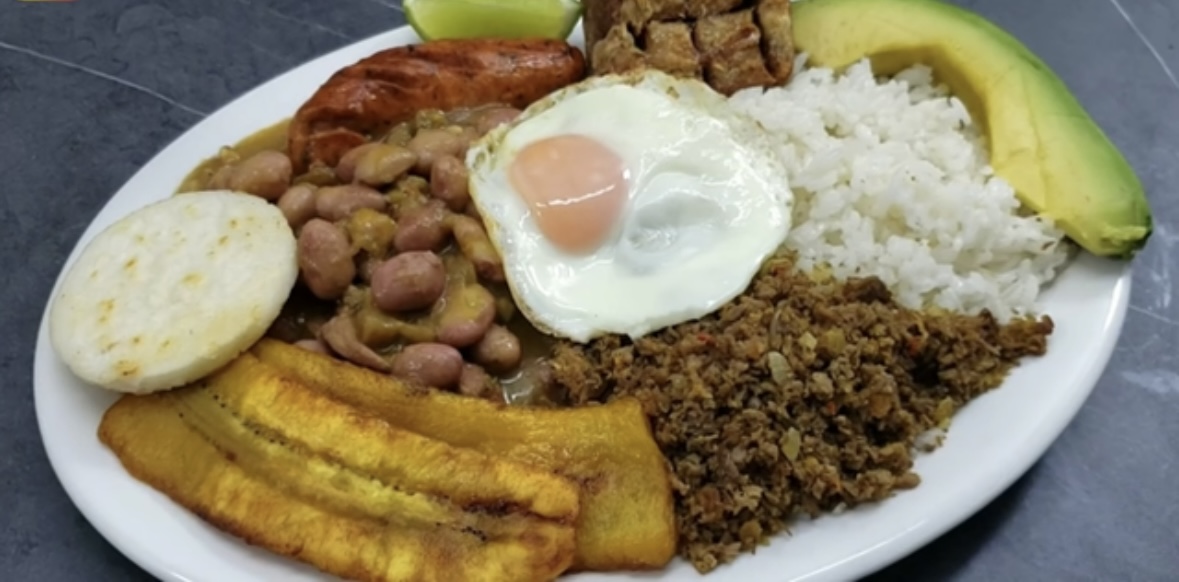 Πάρτε το bandeja paisa: που ονομάζεται το πιάτο της πόλης που πρέπει να φάτε από τους ντόπιους, η απάντηση της Κολομβίας στο τηγάνισμα κάνει ένα πλούσιο γεύμα με τοπικά υλικά και κολομβιανές βασικές πρώτες ύλες, όπως ρύζι, κόκκινα ή μαύρα φασόλια, αβοκάντο, χοιρινό δέρμα, αρέπας, πλατάνια , hagao και chorizo.