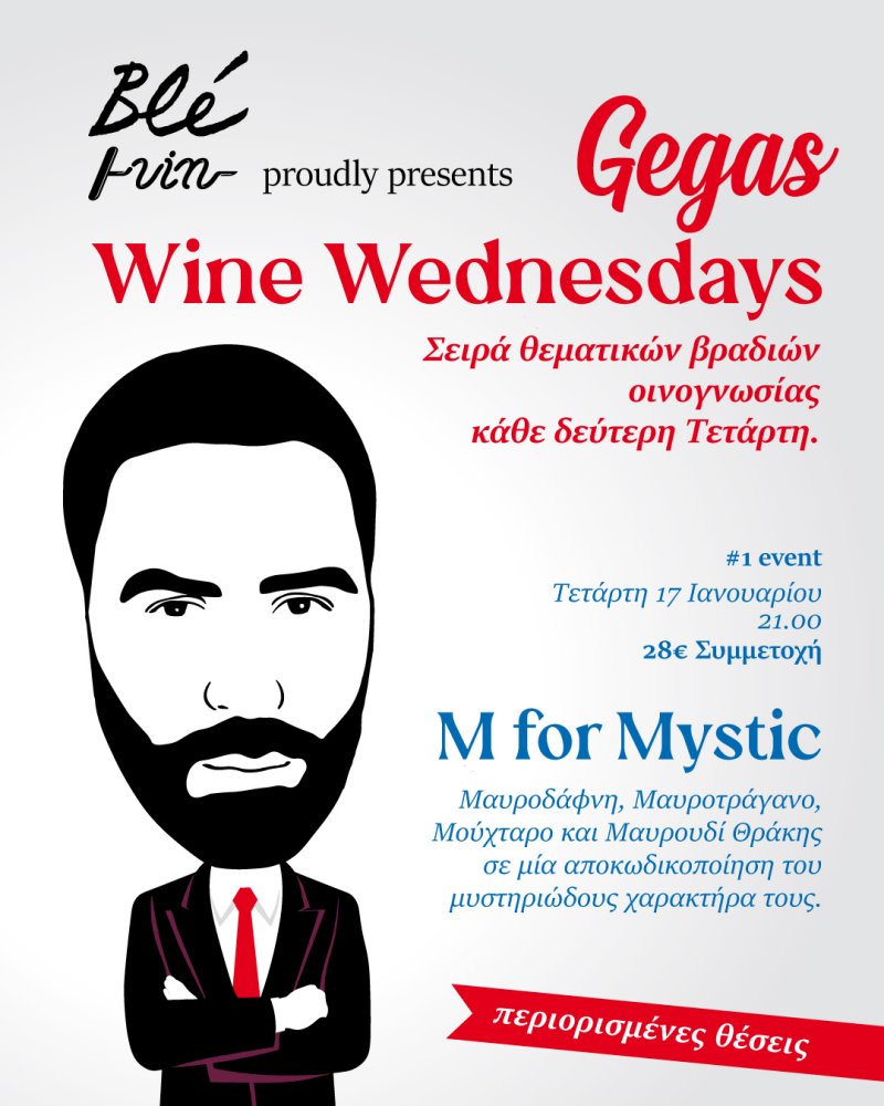 Από την Τετάρτη 17.01.2024, και κάθε δεύτερη Τετάρτη, ο οινοκριτικός και σύμβουλος οίνου Παύλος Γκέγκας σας καλωσορίζει στο «μυστικό» κελάρι του Blé Vin στην καρδιά της πόλης, στον πεζόδρομο της Αγίας Σοφίας, για μία σειρά wine tasting events που θα μείνουν χαραγμένα στη μνήμη!