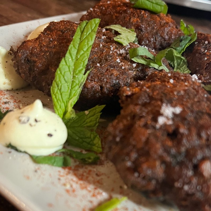 Εδώ, λοιπόν, απολαύσαμε κουζίνα της Μάνης, αλλά μ’ ένα μοντέρνο twist. Οι κορυφαίοι σπιτικοί καρυδοκεφτέδες με πετροκάρυδα από το χωριό και βρώμη- οφείλουμε να ομολογήσουμε, μας κέρδισαν αμέσως, όπως και ο Πολύφημος, το Μεσσηνιακό τυρί απο εκλεκτό γάλα της περιοχής, απο το τυροκομείο της οικογένειας κ. Πετρόπουλου.