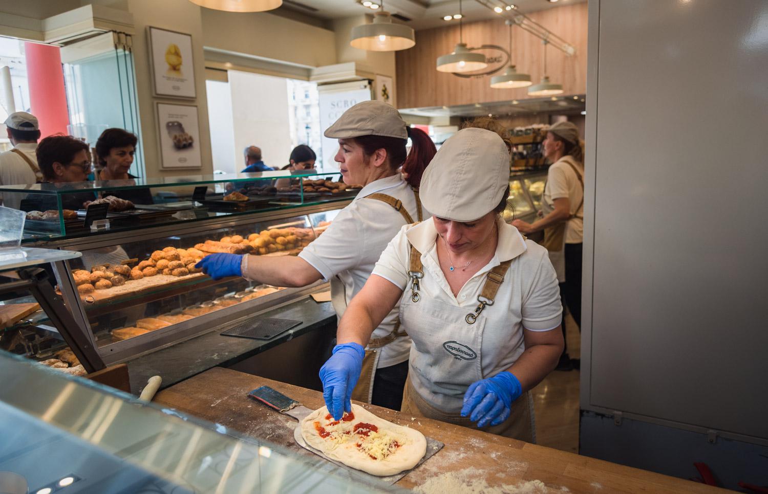 Επιλέγετε ποια πρόταση θέλετε από τις 6 συνταγές και εκείνοι φτιάχνουν την Scrocchiarella μπροστά σας. Περιμένετε γύρω στα 3-5 λεπτά γιατί ψήνεται τη στιγμή που τη ζητάτε. Συνεπώς μικρή υπομονή απαιτείται!