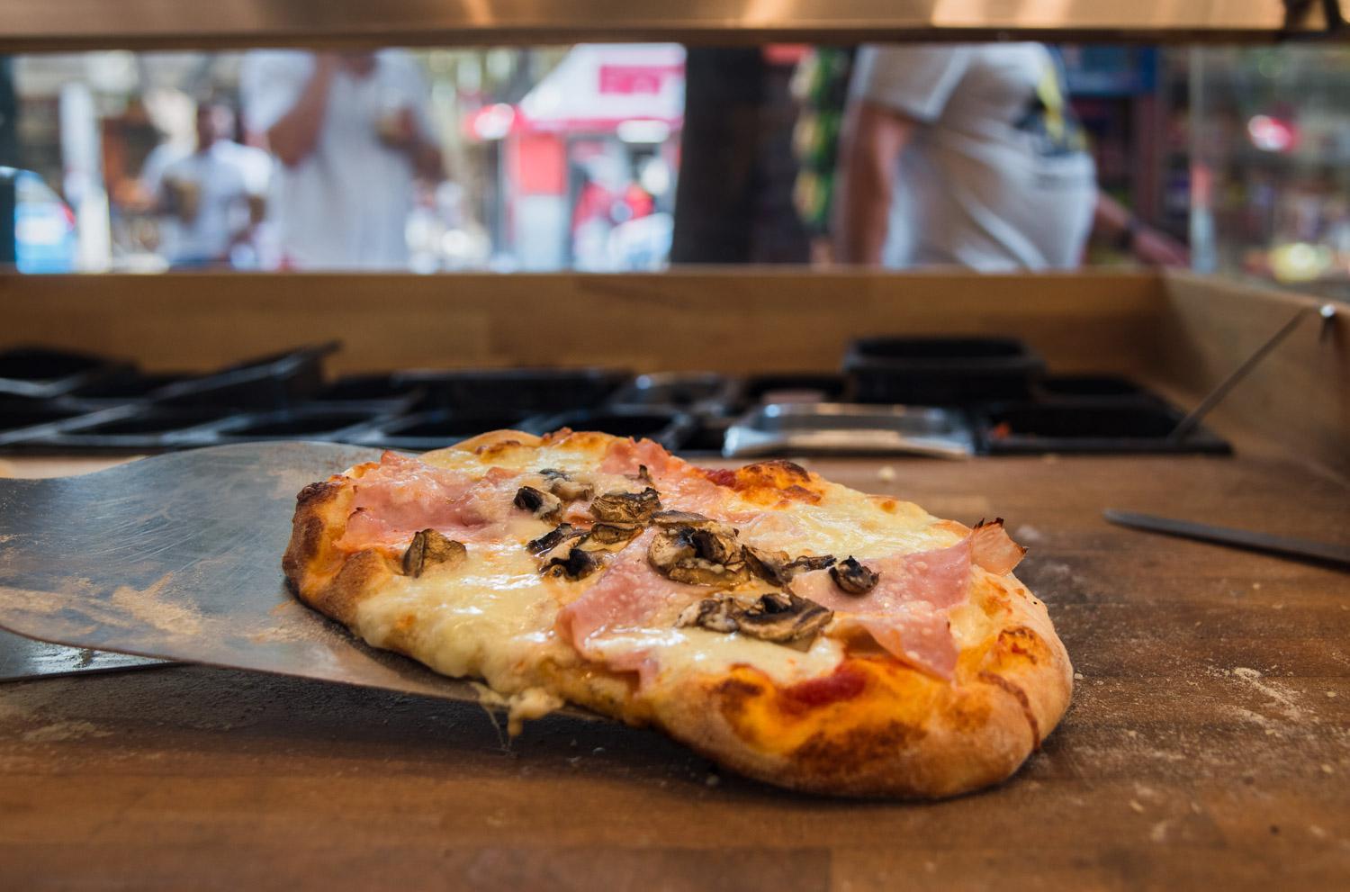 ΖΑΜΠΟΝ, με μείγμα τυριών, μπέικον, μανιτάρια, σάλτσα ντομάτας.