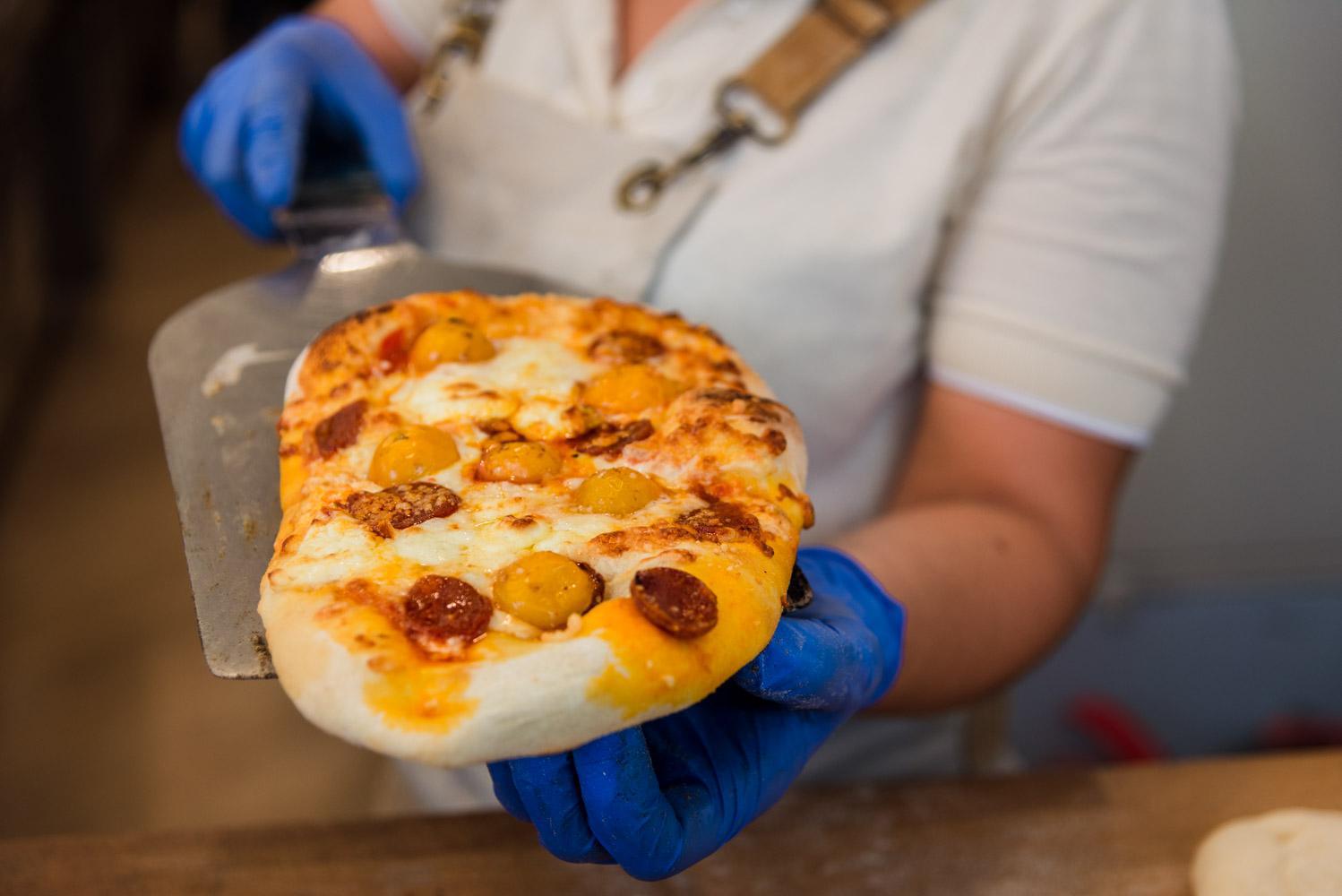 CHORIZO, βολάκι Άνδρου, παρμεζάνα, μείγμα τυριών, κίτρινα ντοματίνια, σάλτσα ντομάτας.