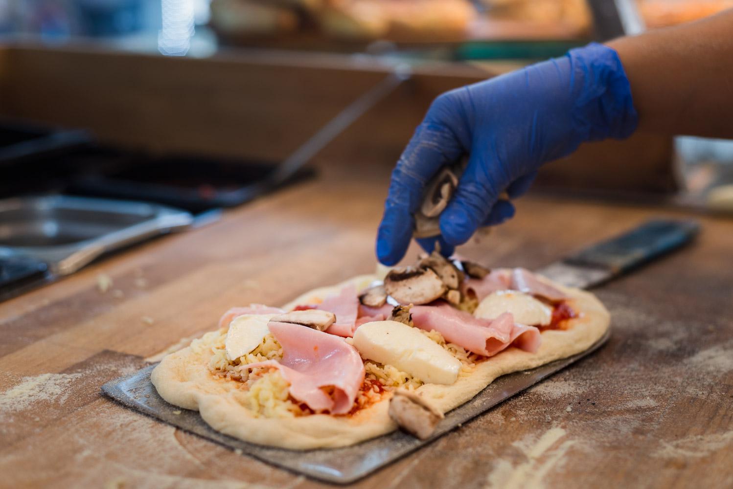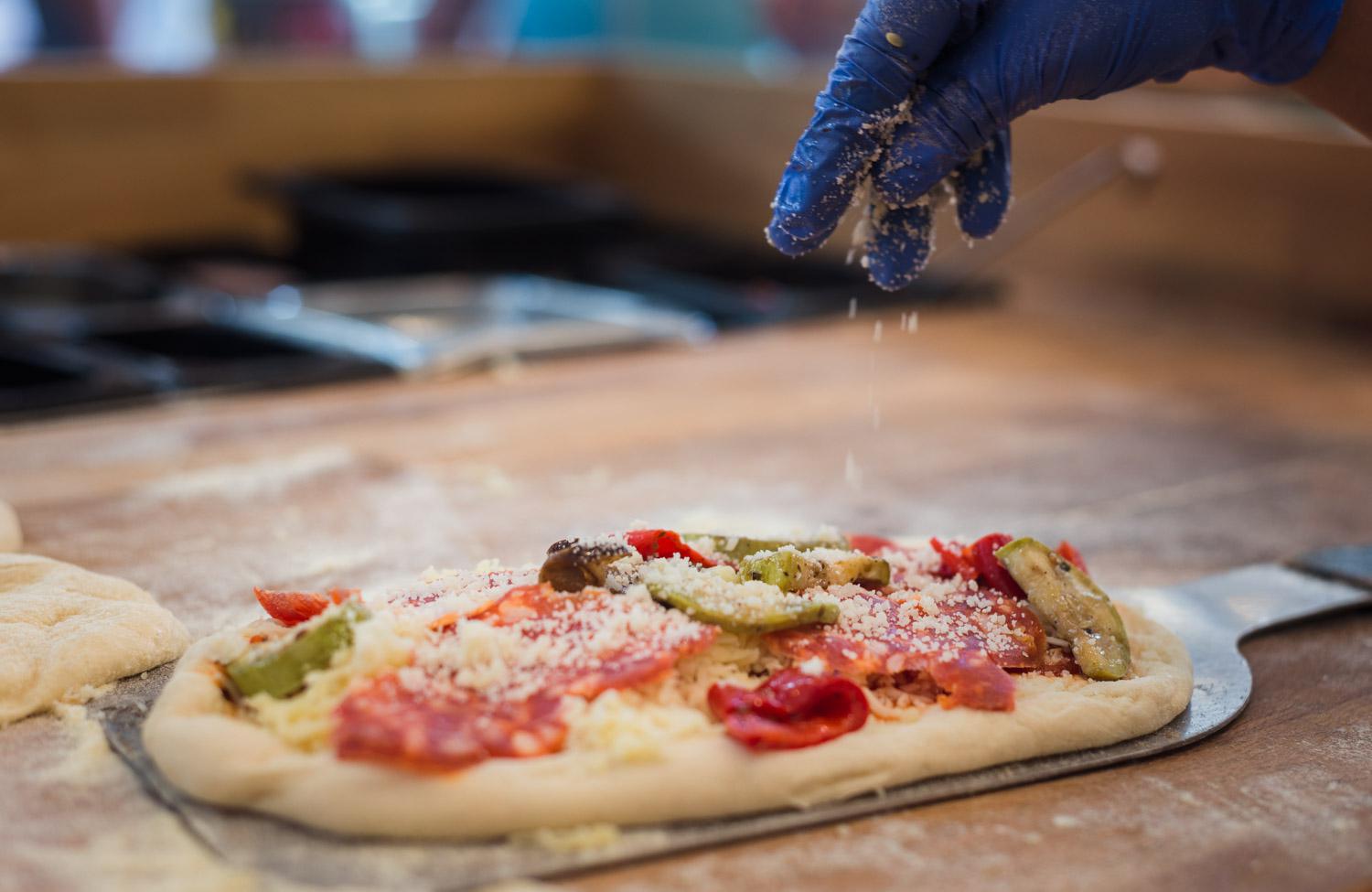 ΜΟΡΤΑΔΕΛΑ με μείγμα λαχανικών, μείγμα τυριών, παρμεζάνα, σάλτσα ντομάτας, πιπέρι.