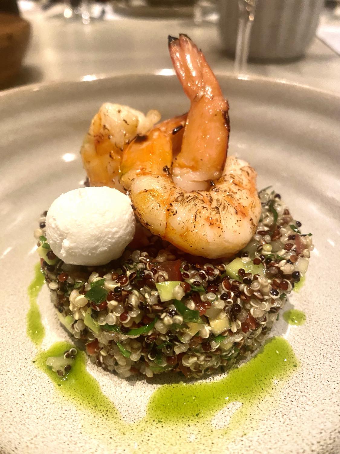 Μια εντυπωσιακή παρέλαση από πιάτα αναφοράς. Τραγανό Χωνάκι με ταρτάρ Φρέσκου ψαριού λευκός ταραμά, αυγοτάραχο και φύκια, quinoa με γαρίδες, Αβοκάντο, ντοματίνια, αγγούρι, μυζήθρα και οξύμελι στη σαλάτα, μάγουλα μαύρου χοίρου με πουρέ παστινάκι, γλυκά πράσα, σάλτσα ψητού με ντομάτα και για φινάλε brownies, cremeux σοκολάτας και φιστίκι Αιγίνης με βανίλια Μαδαγασκάρης.