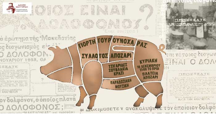 Την Κυριακή 18/12 και ώρα 11:00 στην πλατεία του Απόζαρι στην Καστοριά αναβιώνει το έθιμο της Γουρουνοχαράς.