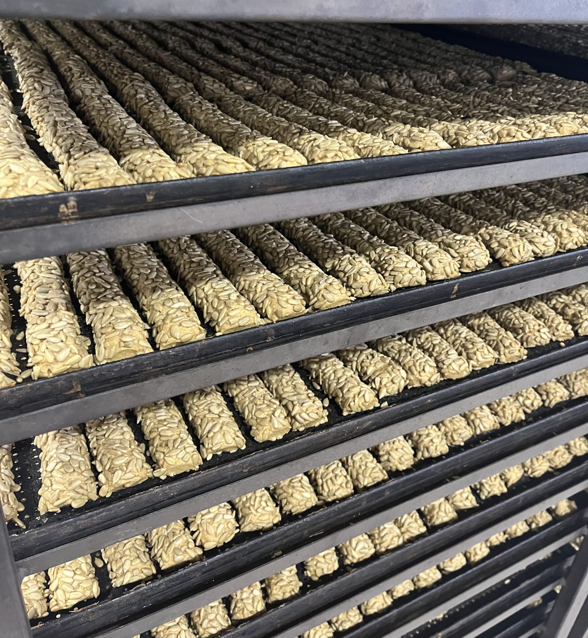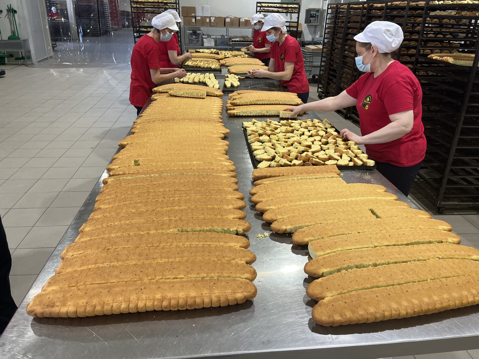 Τηρώντας όλους τους κανόνες υγιεινής, γίναμε ένα με τους εργαζόμενους. Βάλαμε τις λευκές ποδιές και τα σκουφάκια και περάσαμε στις εντυπωσιακές εγκαταστάσεις, όπου γινόταν η ζύμωση και η παρασκευή των προϊόντων. Στις σύγχρονες εγκαταστάσεις της εταιρείας που επισκεφτήκαμε, η διαδικασία των κριτσινιών από την αρχή μέχρι το τέλος της είναι αυτοματοποιημένη, που σημαίνει ότι δεν επεμβαίνει στιγμή το ανθρώπινο χέρι. Εκτός από εντυπωσιακή στην όψη, η επένδυση των 3 εκατομμυρίων ευρώ σε αυτή την αυτοματοποίηση φέρνει τα αποτελέσματα των 120.000 συσκευασιών το 24ωρο.