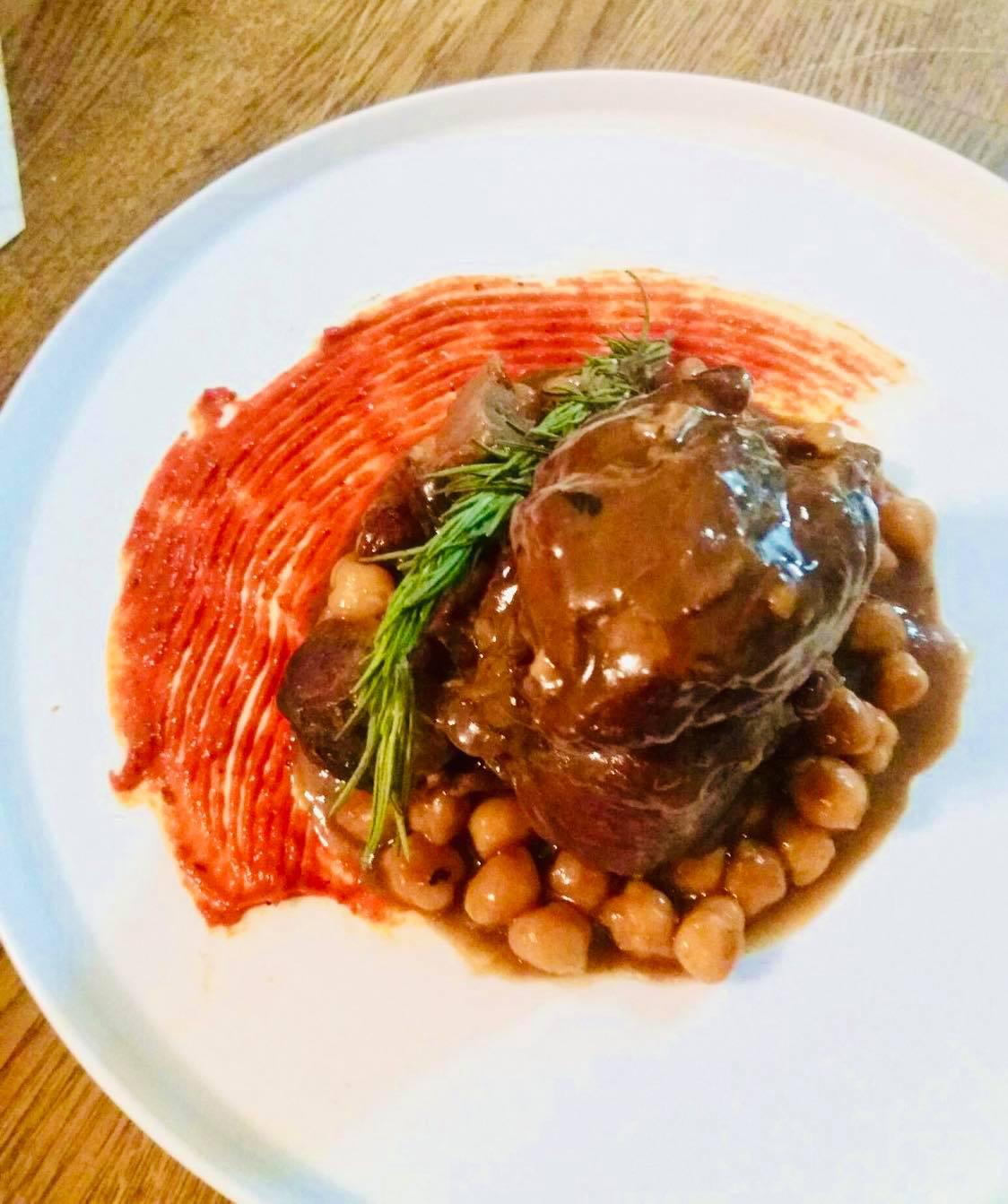 Το ωραιότερο κοτοπουλάκι που φάγαμε εδώ και χρόνια, ένα μπούτι στη σχάρα με πέτσα κραμπλ και πουρέ πράσου. Ένα ιδιαίτερο μοσχαράκι κοκκινιστό με σπανάκι και χυλοπίτες, τόσο μαμαδίστικο και τόσο θεϊκό! Αρνάκι μπούτι μπρεζέ με ρεβύθια και πάστα κόκκινης πιπεριάς και φυσικά η τέλεια σπαλομπριζόλα με πουρέ μελιτζάνας και μια κότα μπαλοτίν γεμιστή με σπανάκι, βολάκι Άνδρου και τζελ από μανταρίνι.