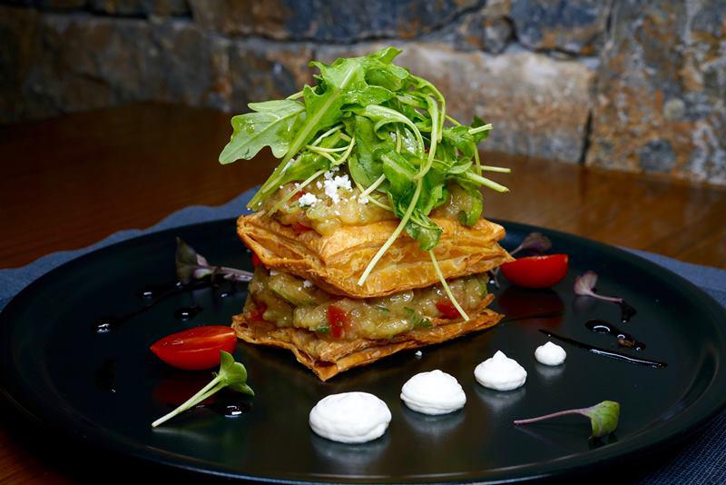 Με πρόθεση το φαγητό που σερβίρεται στο εστιατόριο να συνδυάζει γεύσεις που θα ταιριάζουν στον χώρο και στην μοναδική τοποθεσία του. Το στήσιμο των πιάτων γίνεται με δημιουργικό τρόπο που εμπνέει όσο και το φυσικό τοπίο. Κάποια από τα καινούρια πιάτα που χαρακτηρίζουν το εστιατόριο είναι η σαλάτα Ντάκος σε δημιουργική μορφή cheesecake, το μιλφέιγ καπνιστής μελιτζανοσαλατας, τα παραδοσιακά κεφτεδάκια με φέτα δυόσμο και τσιπς πατάτας, η σαλάτα σπανακόπιτα που δίνει την αίσθηση της πίτας σε κρύα μορφή σαλάτας.