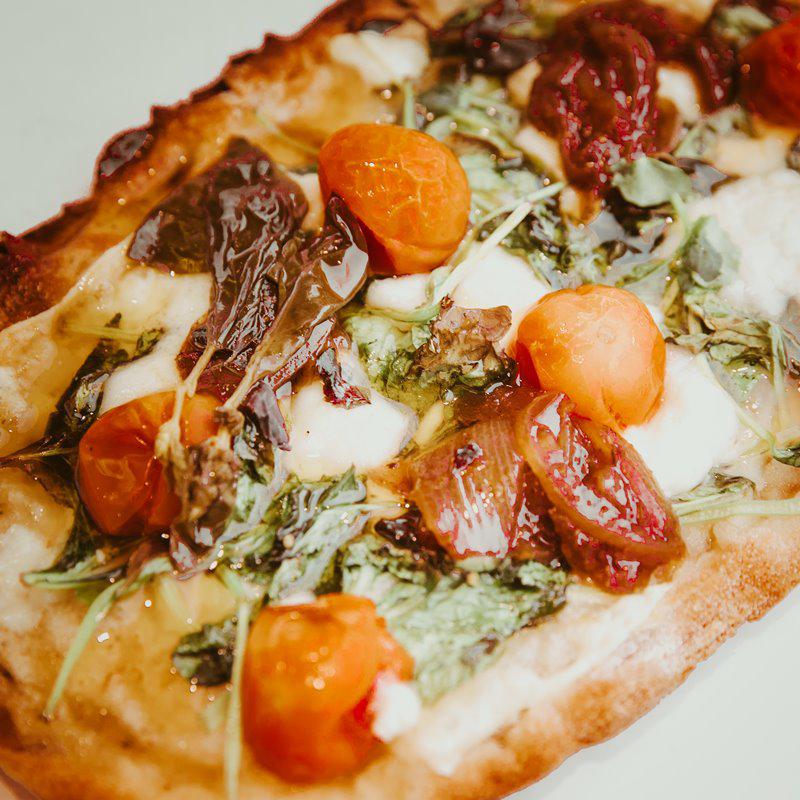 Μια υπέροχη εκδοχή pizza: Flatbread Pizza με Χοιρινή Σπάλα σε προζυμένια ζύμη αργής με γραβιέρα, ψητά ντοματίνια και καραμελωμένο κρεμμύδι ή Flatbread Pizza με παλαιωμένη φέτα και σπανάκι σε προζυμένια ζύμη αργής ωρίμανσης με παλαιωμένη φέτα Κωσταρέλλου, σπανάκι, ψητά ντοματίνια και φρέσκα μυρωδικά και καραμελωμένο κρεμμύδι!