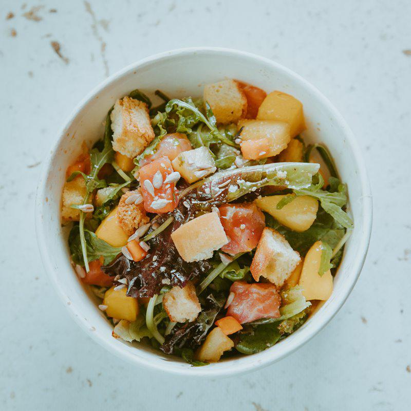 Συνοδέψτε τα πιάτα σας με δυο αλλιώτικες σαλάτες: Μία με κοτόπουλο, ψητό καλαμπόκι, τοματίνια, αβοκάντο, λάχανο, σουσάμι, βινεγκρέτ και τριμμένη παρμεζάνα και μια με σολομός συνοδευόμενα με πράσινα φύλλα λαχανικών, κολοκυθόσπορο, σουσάμι, κρουτόν σάλτσα ponzu και βινεγκρέτ μάνγκο!