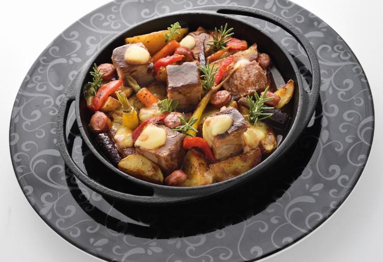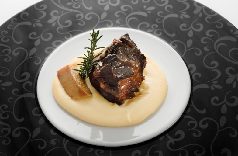 Κυρίως πιάτο Μάγουλα μοσχαρίσια στη γάστρα / πουρές από κυδώνια / σάλτσα κρασιού.