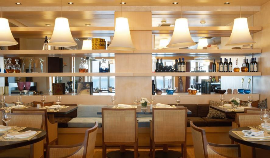 Ο απόλυτος χώρος στην πόλη με θέα στη θάλασσα και το πορφυρό ηλιοβασίλεμα με προσεγμένη μοντέρνα Μεσογειακή κουζίνα και έμφαση στις αυθεντικές ελληνικές γεύσεις. Όλα τα πιάτα είναι φτιαγμένα από αγνά υλικά, επιλεγμένα από διάφορες γωνιές της Ελλάδος που με τη μαεστρία των ανθρώπων της κουζίνας μετατρέπονται σε γαστρονομικές απολαύσεις. Σε ένα περιβάλλον αρμονίας με γήινα χρώματα, ιδανική επιλογή ακόμη και για τους πιο απαιτητικούς επισκέπτες, οι οποίοι μπορούν να απολαύσουν έναν αυθεντικό Ιταλικό espresso από ειδικό χαρμάνι αναμειγμένο ειδικά για τους επισκέπτες του, καθώς και ένα ελαφρύ γεύμα ή δείπνο.
