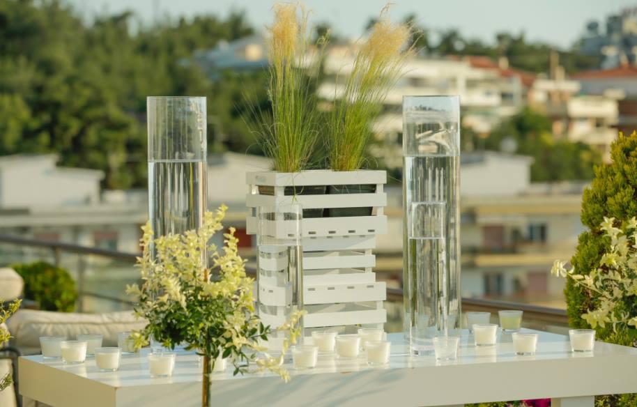 Σε ένα ολάνθιστο σκηνικό, με κομψές και άνετες λευκές καρέκλες και τραπέζια, μίνιμαλ αλλά και σύγχρονες λεπτομέρειες σε ένα σκηνικό που δημιουργεί την αίσθηση του καμβά, έτοιμοι να υποδεχθεί όλα όσα θα συμβούν γευστικά σε αυτή την βεράντα κάτω από τον ανοιχτό ουρανό.