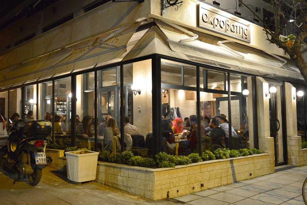 Στον Ακροβάτη προς τιμήν τους δεν καπνίζεις εντός, παρά μόνο στον περιμετρικό χώρο στα παράθυρα, θα πετύχεις πολύ συχνά εξαιρετικά κρητικά live και παρουσιάσεις κρασιών και ρακής και πολλά αναπάντεχα.