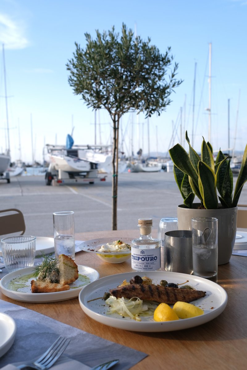 Στα πιάτα της ημέρας ο αγώνας γίνεται στο τι να αποκλείσεις από την παραγγελία, μην ξωκείλεις. Γοφάρι σπέσιαλ, ξιφίας στη σχάρα, η πεσκανδρίτσα που έπαιρνε η μαμά σου από τον ψαρά που περνούσε από τη γειτονιά για να φάει το παιδί ψάρι ξεχωριστό, αλλά και φυσικά οι γαυρούληδες και οι σαρδελίτσες σε κάθε εκδοχή, δοξάζοντας τη σχάρα, τον αχνό ή το τηγάνι.
