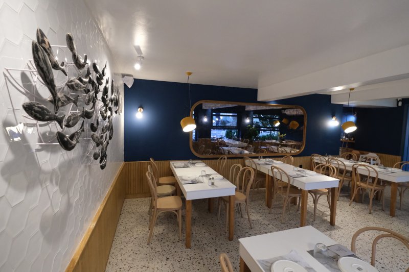 Το δεύτερο στοίχημα ήταν η αισθητική. Έχοντας το πρώτο γερό χαρτί με το καλημέρα, την απόλυτη θέση στο Θερμαϊκό, το ισόγειο του Ναυτικού Ομίλου, που καθώς περνάς το κατώφλι του αισθάνεσαι ότι πιάνει το καράβι σε νησί, με τα ωραία σκάφη στη μαρίνα, τον απόλυτο ορίζοντα να αλλάζει χρώματα και διαθέσεις μπροστά στα μάτια σου και τη γαλήνη της Καλαμαριώτικης παραλίας να σε γαληνεύει, όφειλαν να φροντίσουν να περάσουν το αίσθημα και εντός.